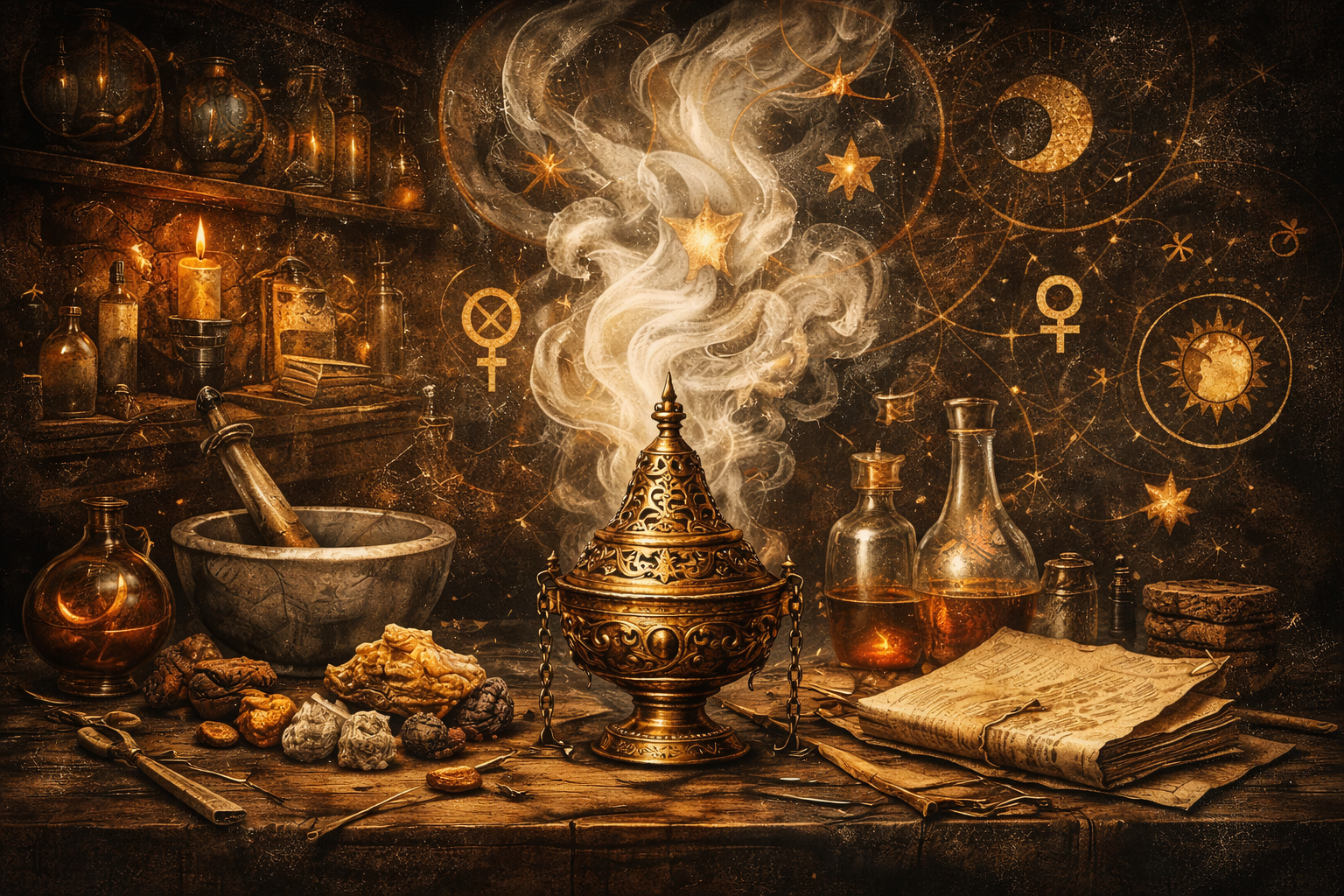 Encens magique personnalisé, fabriqué sur-mesure selon votre intention : rituel, protection, connexion au Daïmon ou travail énergétique. Création artisanale unique (30g), formulée selon les principes de la tradition magique occidentale.
